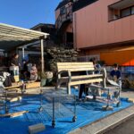 - 「軒先ベンチ」という取り組み12/28「軒先ベンチ」の製作会が開催された。12時からは地元の中学生3人がベンチを組み立て。14時からは子どもたちがベンチに貼る貼る思い想いの絵を描いた。