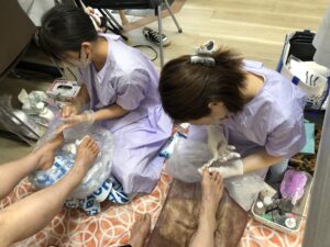 怪我をされている方や妊娠などでかがむことが難しくなった方だけではない。一般の方も(私も)普段自分の足を自分で丁寧にケアできないのでとても助かる。本日初めて体験された方もとても満足した様子だ。現役の看護師さんもおり、爪のトラブル相談にも応じてくれる。