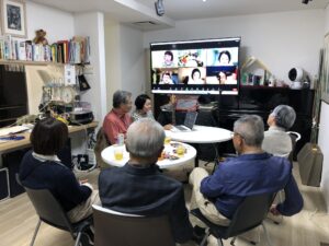 町田市成瀬台で活動されている「高齢者共生の会」の方々が、陽だまりカフェで、北里大学の認知症「この指止まれミーティング」にオンライン参加し、「高齢者共生の会」の取り組みや、成瀬台の集い場(お気軽永尾亭・陽だまりカフェ)の活動の発表をした。