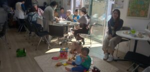 一歳半の男の子二人もおもちゃで楽しく遊んだり、皆さんとケーキを頂き、お昼は若いママ三人でカフェのキツネうどんや焼そばを、美味しいですと、楽しく情報交換していました。陽だまりカフェは、「気になってました。初めて入りましたまた来ます」と。来月12月7日も良い会にしたいと思います。