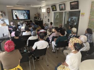 8月3日(日)みんなの居場所「陽だまりカフェ」の一番人気コンテンツである「シルバーシネマパラダイス」開催しました。今日の映画は「北北西に進路を取れ」ヒッチコック監督作品のサスペンスです。主演はケーリー・グラント、