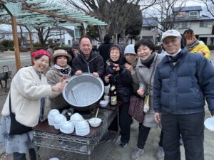 七草粥 2026年1月7日 最終更新日時 : 2026年1月8日 hidamari 昨日は人日の節句、七草粥をラジオ体操の後で約60名の参加者の皆さまと一緒無病息災を願って食べました。七草セットと芹は購入しましたが、あとは畑から収穫した、すずな(蕪)すずしろ(大根)、ハコベなどを使いました。寒い朝でしたが、おかゆでホカホカ