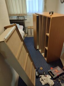 新規に制作した軒先ベンチの「背あり」タイプを予定の場所に設置した。成瀬台2丁目にある介護施設「ミモザ」に設置していたところ、ご近所に住む脚部を組み立ててくださった「家具修理屋さん」がちょうど目の前をバイクで通過し、施設長と記念写真をパチリ。施設長との立ち話の中で、ご利用者さんの個室に置かれているタンスの引き出しが破損・・・・。待て待て、世の中、そんなに偶然は重ならないはずだぞ。