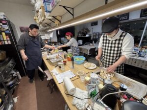 若い方も調理を手伝ってくれ、和気あいあい、楽しく食を通して多世代が交流しています。今日はスマホで東京都アプリのポイントゲットのお手伝いもして、たいへん喜ばれました‼️