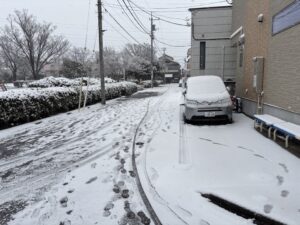 大型の寒気により2/7土曜日の夜から2/8日曜日にかけて町田にも積雪がありました。日曜日の午前中、どうしても車で移動しなければならない予定がありノーマルタイヤで出かけましたが、案の定、近くの坂道を登り切ることができず、回り道せざるを得ない状況でした。店舗周辺の雪かきはそれほどの量ではなかったので助かりました。
