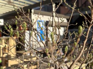 陽だまりカフェのシンボルツリーの二つが芽吹いてきた。