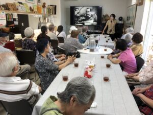7月2日。「シルバーシネマパラダイス」開催しました。「カサブランカ」は第二次世界大戦中、1942年のモノクロのアメリカ映画で、ナチスドイツにパリが占領された時代のモロッコが舞台です。